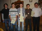 Trainer Thomas Engl nahm danach die Siegerehrung der Vereinsmeisterschaft vor, die dieses Jahr mit äußerst knappen Ergebnissen zustande kam. Keine Probleme hatte Sebastian Schmid, seinen Titel zu verteidigen, er musste keinen einzigen Satz abgeben und erhielt dafür den verdienten Pokal. Spiel- und Satzgleich war dagegen das Ergebnis des zweit- und drittplatzierten. Nur wenige Punkte entschieden darüber, dass schließlich Dominik Schmid die Silbermedaille und Michael Engl die Bronzemedaille erhielten. Auf den weiteren Plätzen folgten Christoph Multerer, Johannes Engl, Sebastian Preis, Sebastian Kaiser, Martin Kellermeier und Julian Laußer. Nach der Siegerehrung bedankten sich die Jugendlichen noch bei ihrem Übungsleiter Thomas Engl und der zweiten Jugendleiterin Monika Schmid mit einem Geschenk.